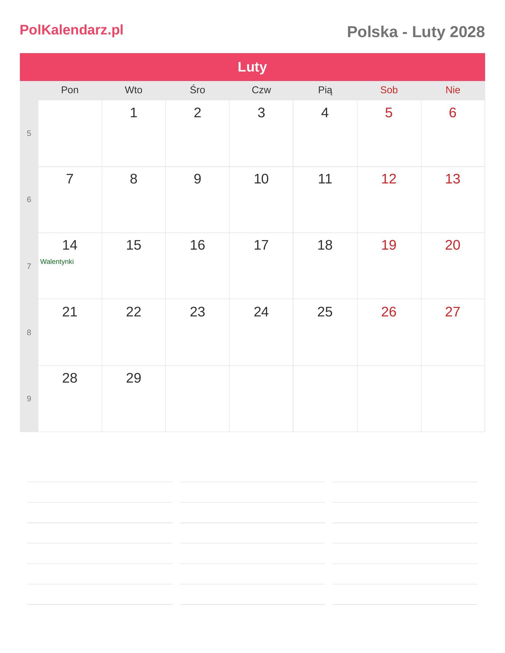 Kalendarz Luty 2028 - Polska