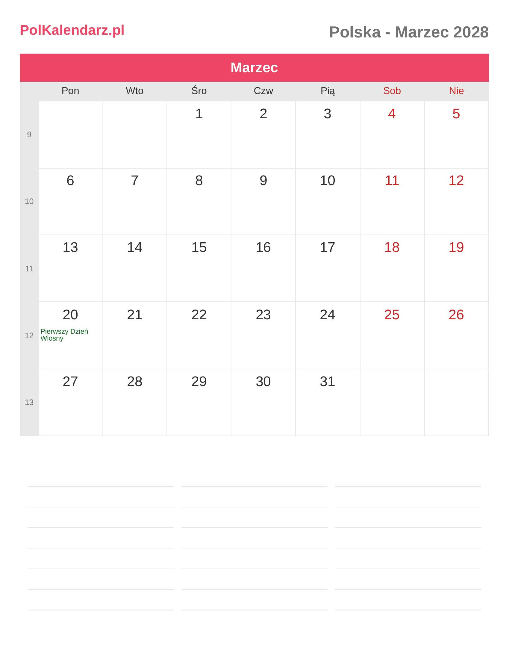 Kalendarz Marzec 2028 - Polska