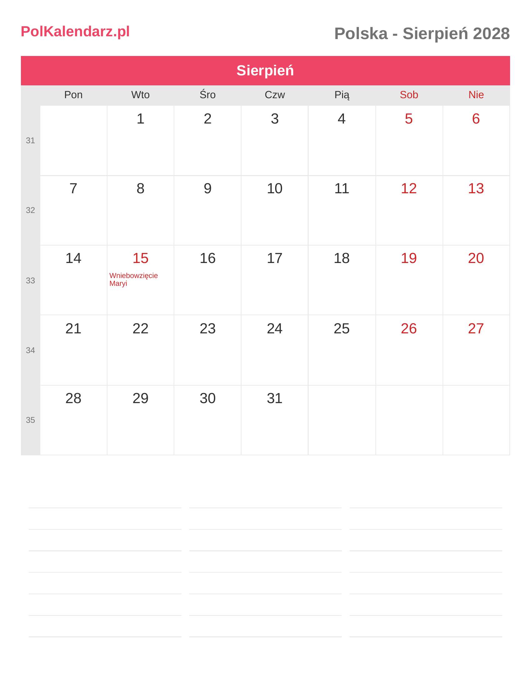 Kalendarz Sierpień 2028 - Polska