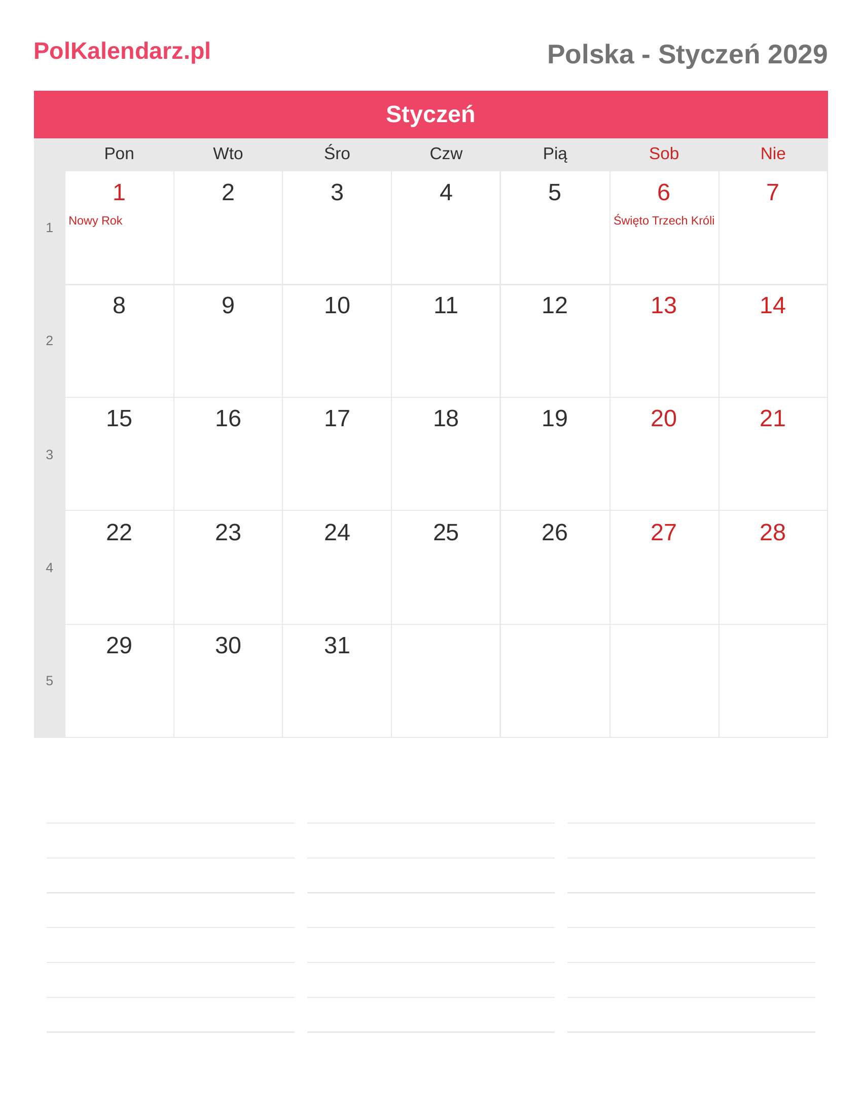 Kalendarz Styczeń 2029 - Polska